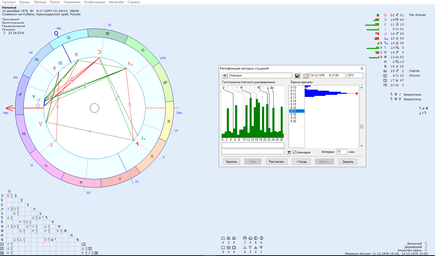 На практике: допустим, клиент знает, что родился «примерно с 8 до 10 утра». Вы вносите этот диапазон и загружаете список значимых событий — программа автоматически покажет, в какие минуты гороскоп «наиболее чувствителен» к этим датам. Это экономит часы ручной работы и позволяет выйти на наиболее точное врем