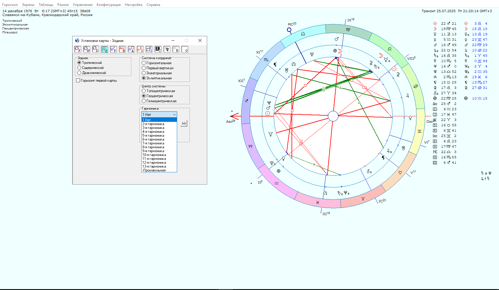 ZET 9 Pro поддерживает все основные системы координат, которые используются в астрологии и астрономии.